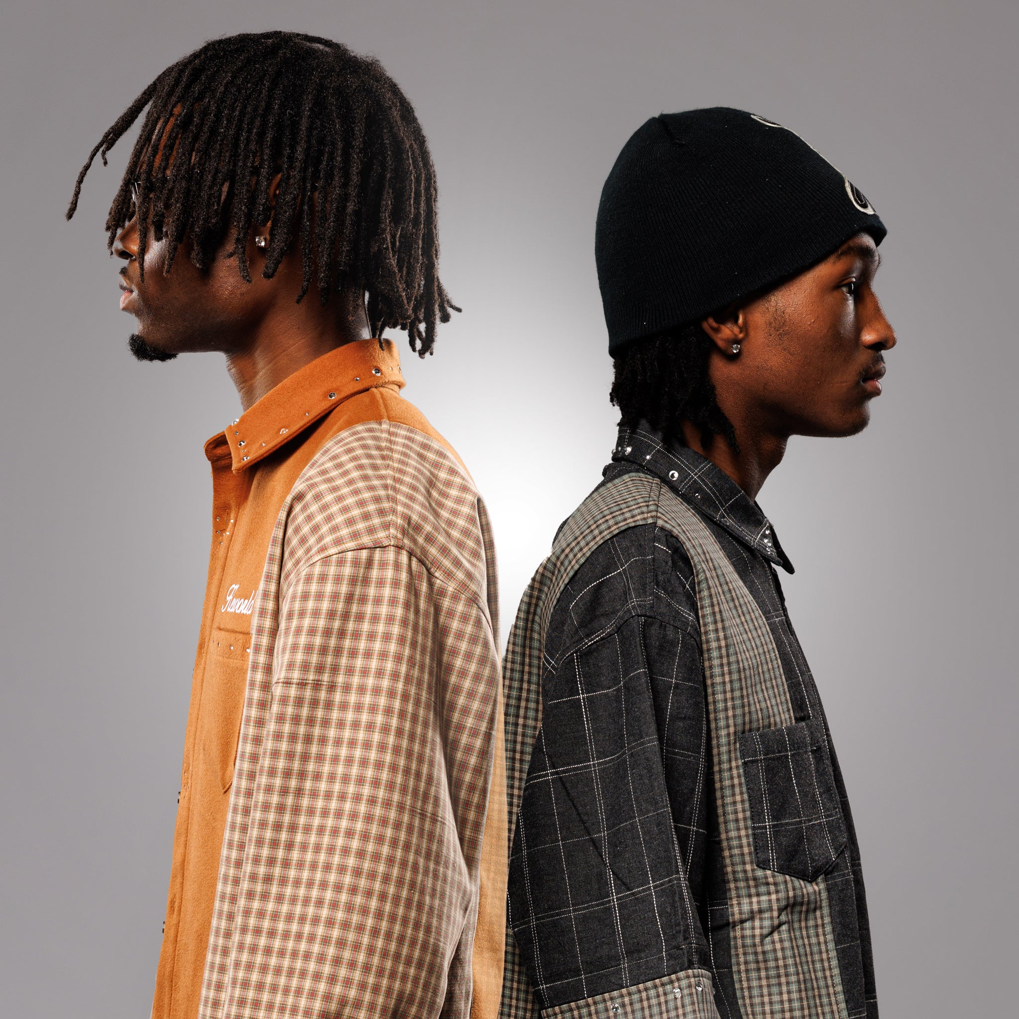 Bold caramel flannel jacket with checkered panel detailing. Made from 100% cotton with soft cotton panels and full lining for all-day comfort. Features a slightly cropped boxy fit, metal button closure, and embroidered branding. The mixed-panel design makes this piece stand out - throw it over a tee or layer it with a hoodie for versatile styling.